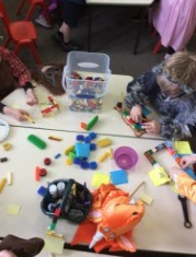 We are having a wonderful week this week for fairytale week. We have listened and recounted lots of our favourite stories, we have done some drama, DT, handwriting, maths and PE all linking to our favourite stories. This morning we built a home for our fairytale character and then labelled it with some wonderful adjectives.