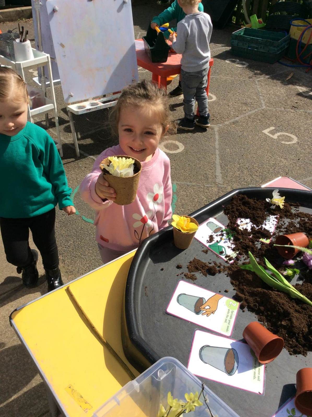 This half-term our topic in Preschool is 'Growing.' We've had lots of fun planting, drawing and painting flowers. We even helped Katie H to put together a new planter for our garden. We're excited to see what grows!
